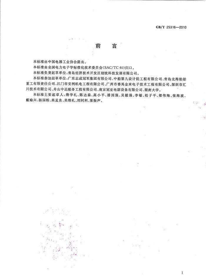 > 創(chuàng)統(tǒng)負(fù)責(zé)起草制訂GB/T25316《靜止式岸電裝置》